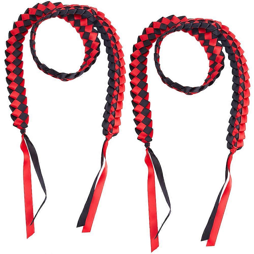 Two Tone Graduation Ribbon Leis Braided Grad Lei for High School College Graduation Party Decor Red 1540~1590x34x1.5mm