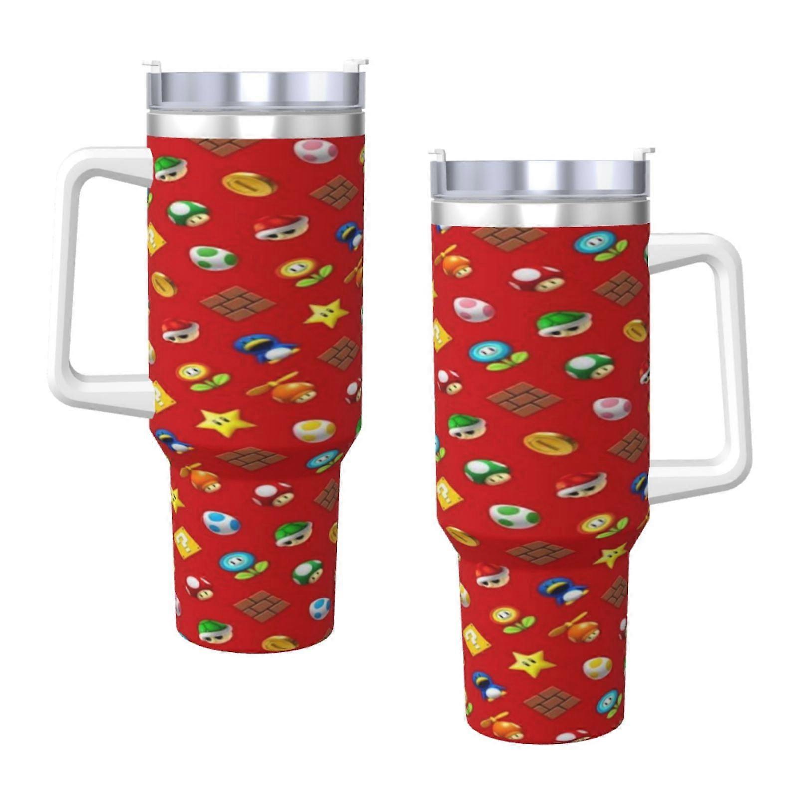 Mario 40 Oz Tumbler With Handle And Straw Lid Insulated Cup Stainless Steel Water Bottle Travel Mug Cupholder Use Gifts