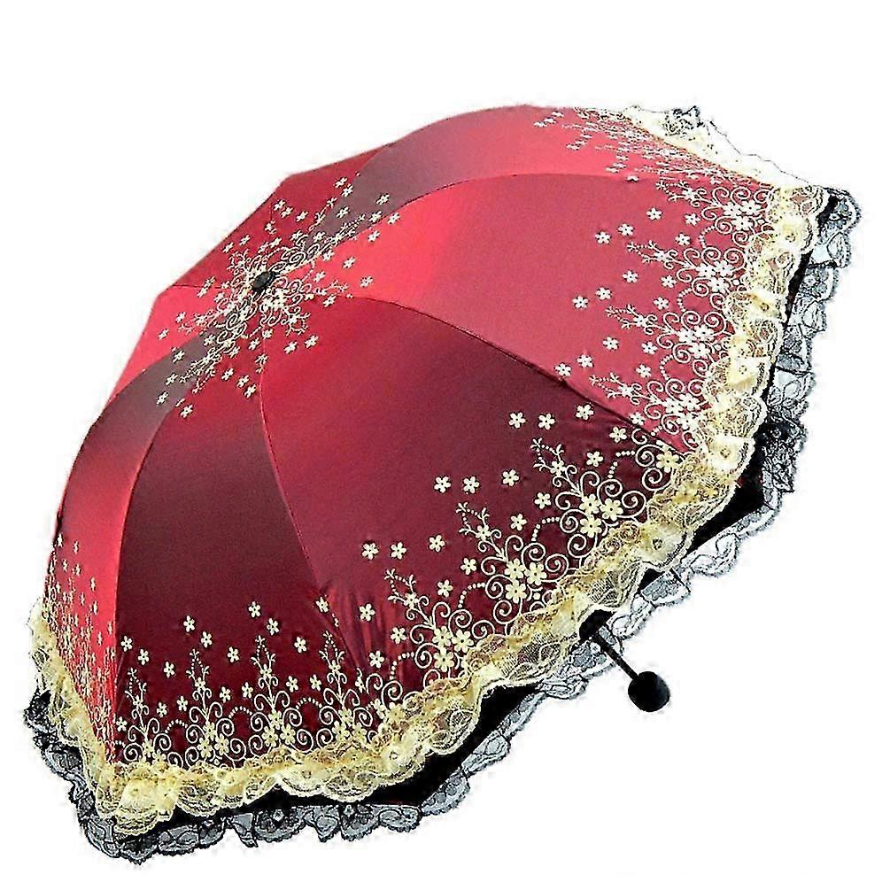 2025 Glowing Lace Umbrella 3 Folding Sunny and Rainy Anti-UV Party Parasol