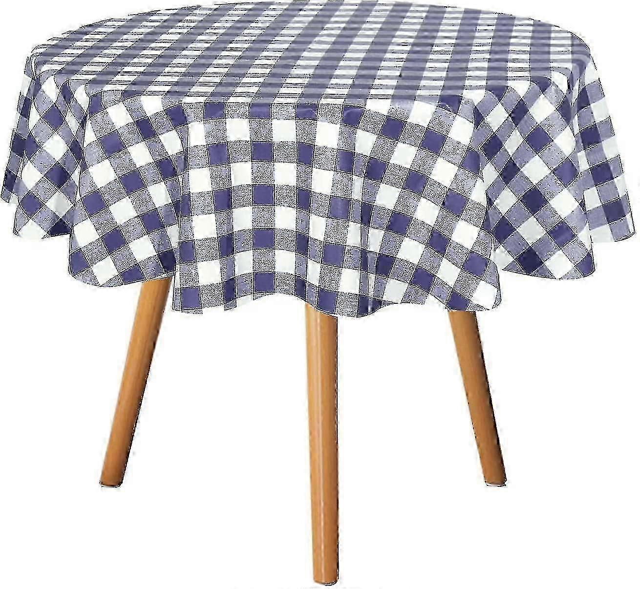 2025 Checkered Round Tablecloth 60 Inch - Waterproof Stain And Wrinkle Resistant Washable Fabric Table Cloth , Royal Blue And White