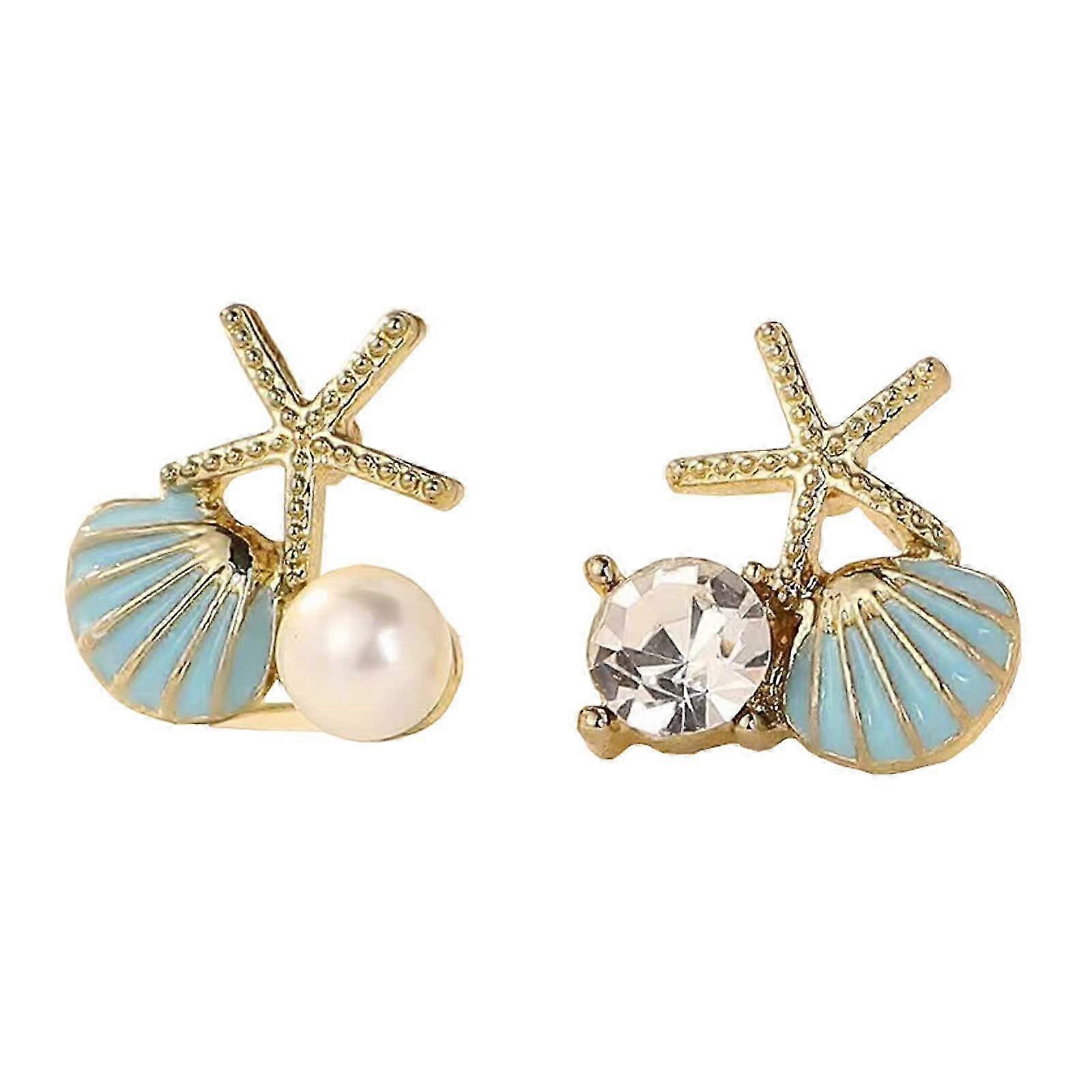 2025 Boho shell earrings for women, asymmetry exquisite starfish shell earrings crystal pearl earring beach jewelry gift blue