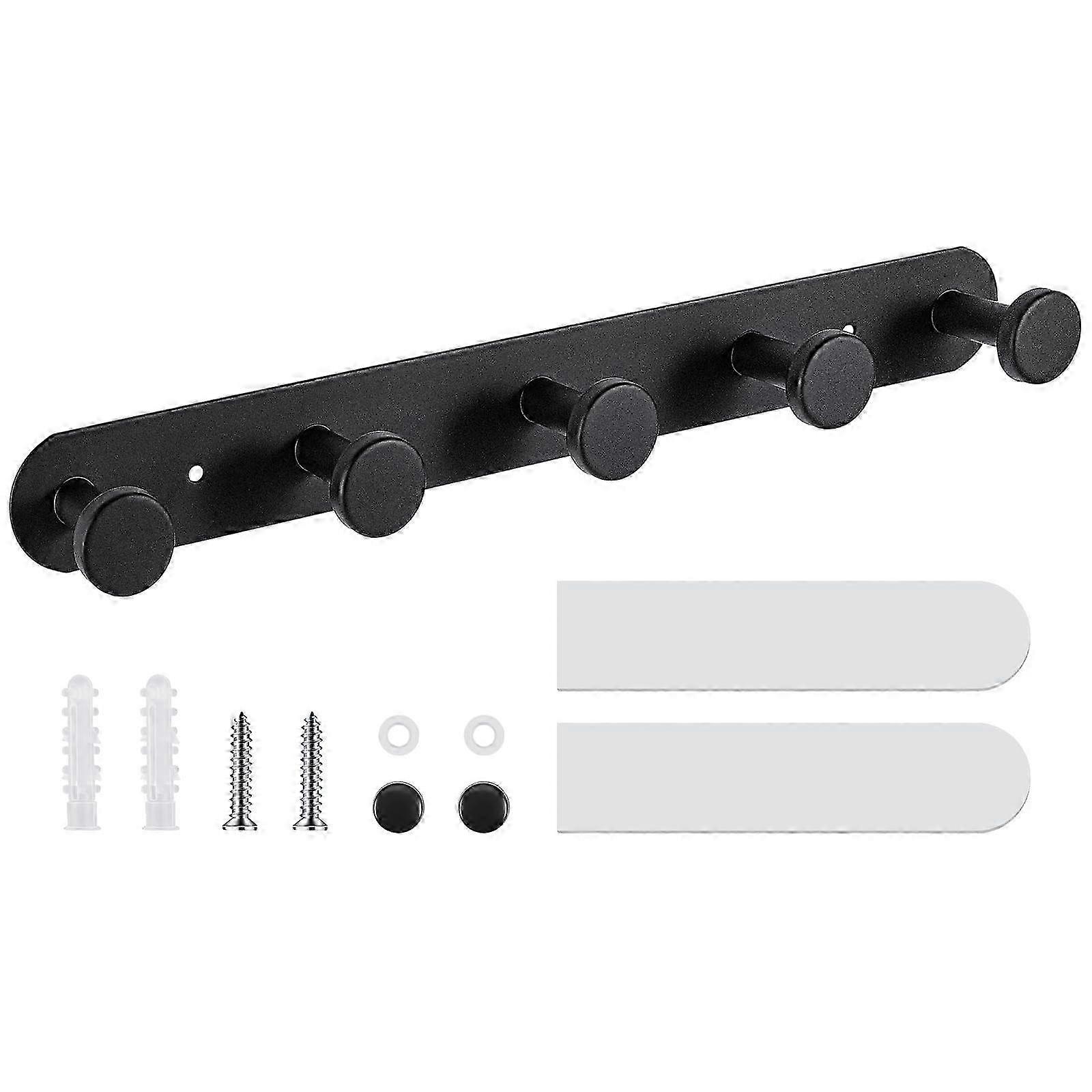 2025 Wall Mounted Coat Hooks, Black 5-Hook Rack, Hanger for Towels, Clothes, and Hats - Adhesive & Screw-in.