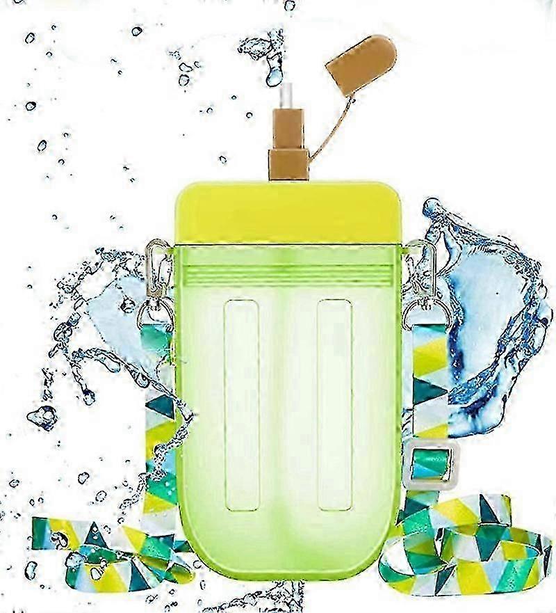 Cute water bottle is made of high quality food grade PC Material, which is BPA free, drop resistance and has no odor. And it can be used to hold water, milk, juice, tea, coffee and so on.Size: 20x6x4.4cm. The water bottle mouth with straw adopts a seal design to protect the straw cleaning and doesnt leak when the water bottle closed for easy carry to enjoy traveling and outdoor sports. The popsicle-shaped water bottle can be carried on the back, holds 300ml of fluid, wide shoulder straps can be adjusted up to 50 inches in length, suitable for kids and adults. The creative shape will make you love it, and the beautiful colors will make your life more stylish. Before first use, please wash with warm water (under 50). And this bottle does not support dishwasher or microwave oven. Do not use hard brushes or steel balls to avoid scratching the product. Do not put water above 70 into bottle to avoid scalding. Note: Due to the light and screen setting difference, the item's color may be slightly different from the pictures. Please allow slight dimension difference due to different manual measurement. Sold by-Minnanxin