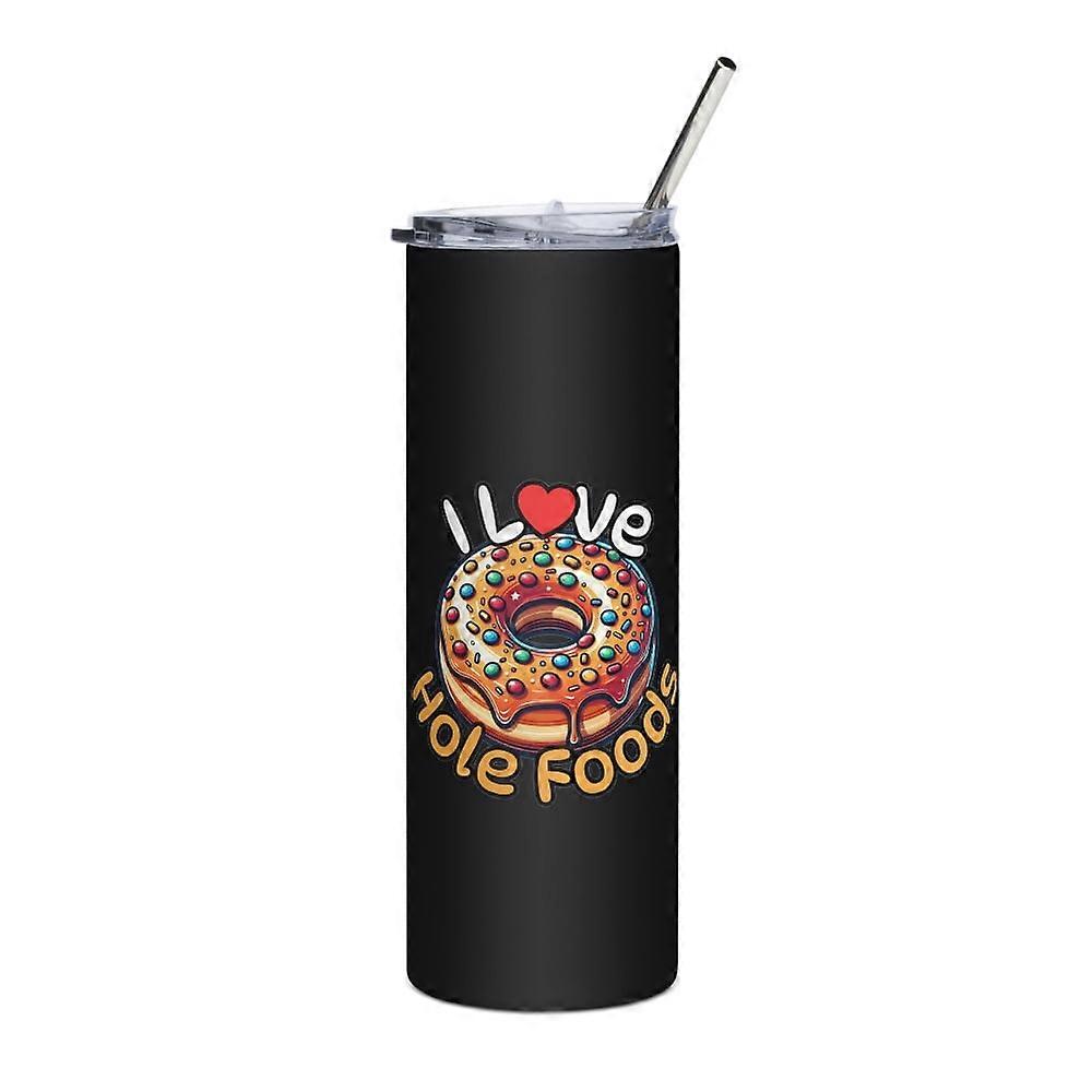 Funny Donut Pun Skinny Slim Tumbler, I Love Hole Foods (Black)