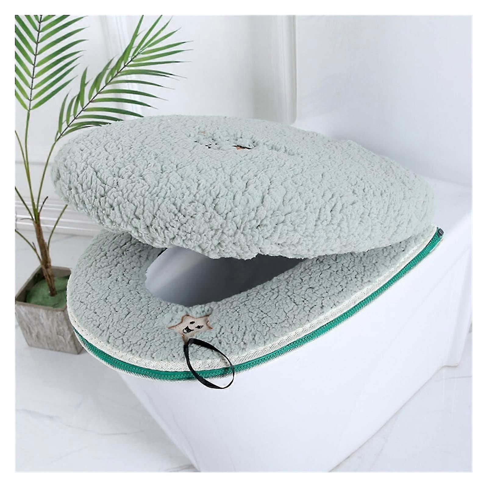 2025 Toilet seat mats set bathroom universal 2pcs/set pillow+cover hot soft washed (Color: Sheep green caps)