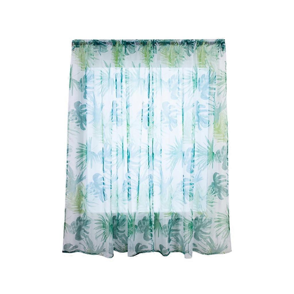 Begine Clearance Palm Leaf Trilon Two Panel Curtain Rod 100x200cm Green, Trees Sheer Curtain Tulle Window Voile Drape Valance Fabric, 2X A Curtain