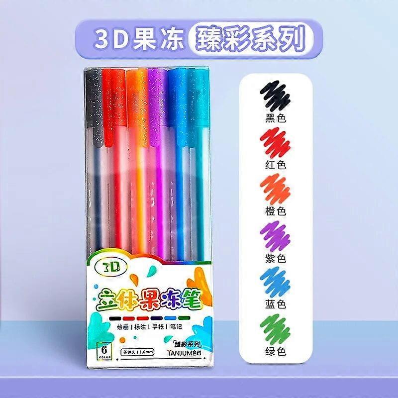 6pcs 3D Colored Gel Pen Glitter Highlighter Marker Journal Suitable For Painting Diary Ceramic Cup Glass DIY Doodles Markers B