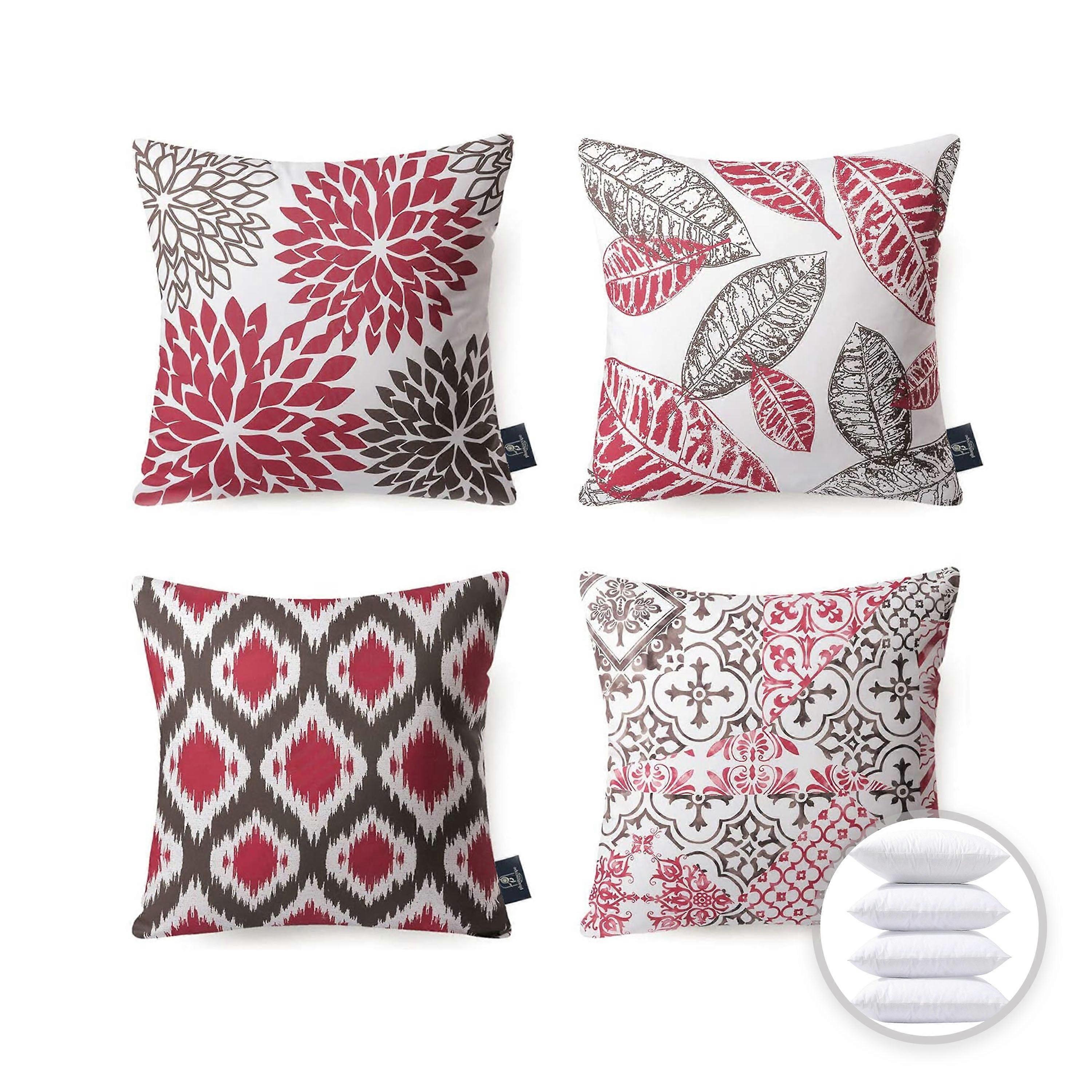 Phantoscope New Living Series Duplex Printing Decorative Throw Pillow, 18" x 18", Red/Brown, 4 Pack