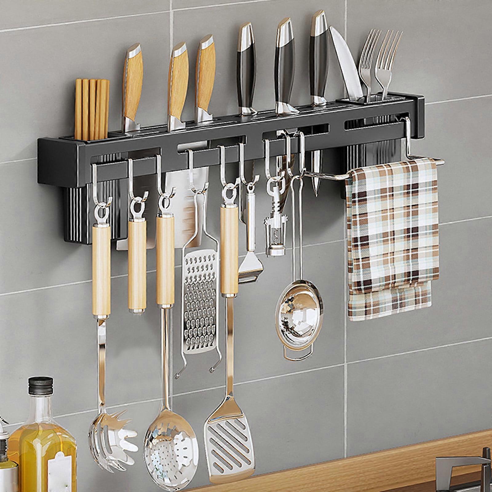Fankiway Kitchen Shelf Rags Storage Rack, No-Punch Spice Rack Wall Mounted Sink Hanging Rack, Removable Knife & Utensil Organizer