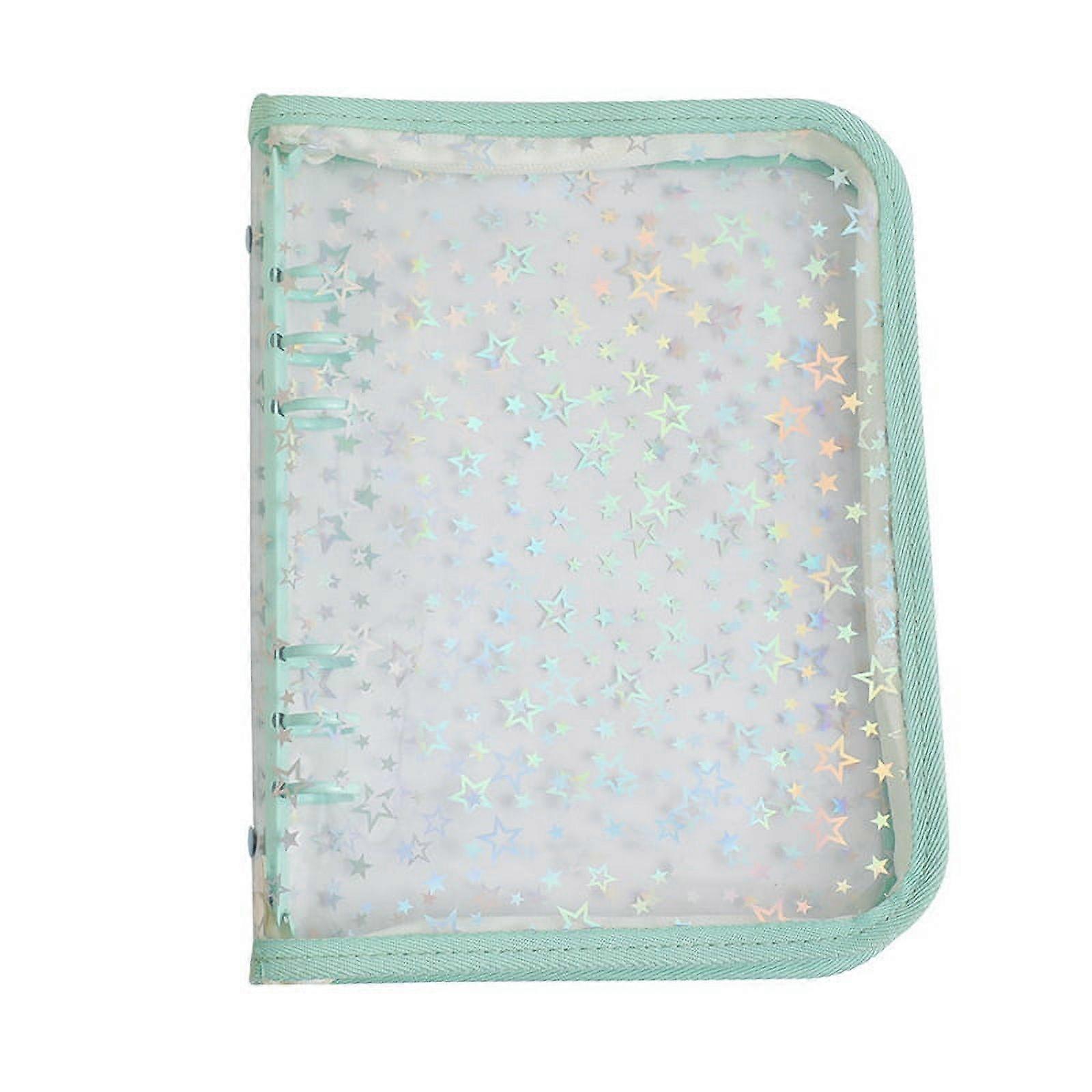 A5 Budget Binder Cover with Zipper, Glitter Stars A5 6 Ring Binder Planner, Clear PVC Refillable Notebook Shell Green