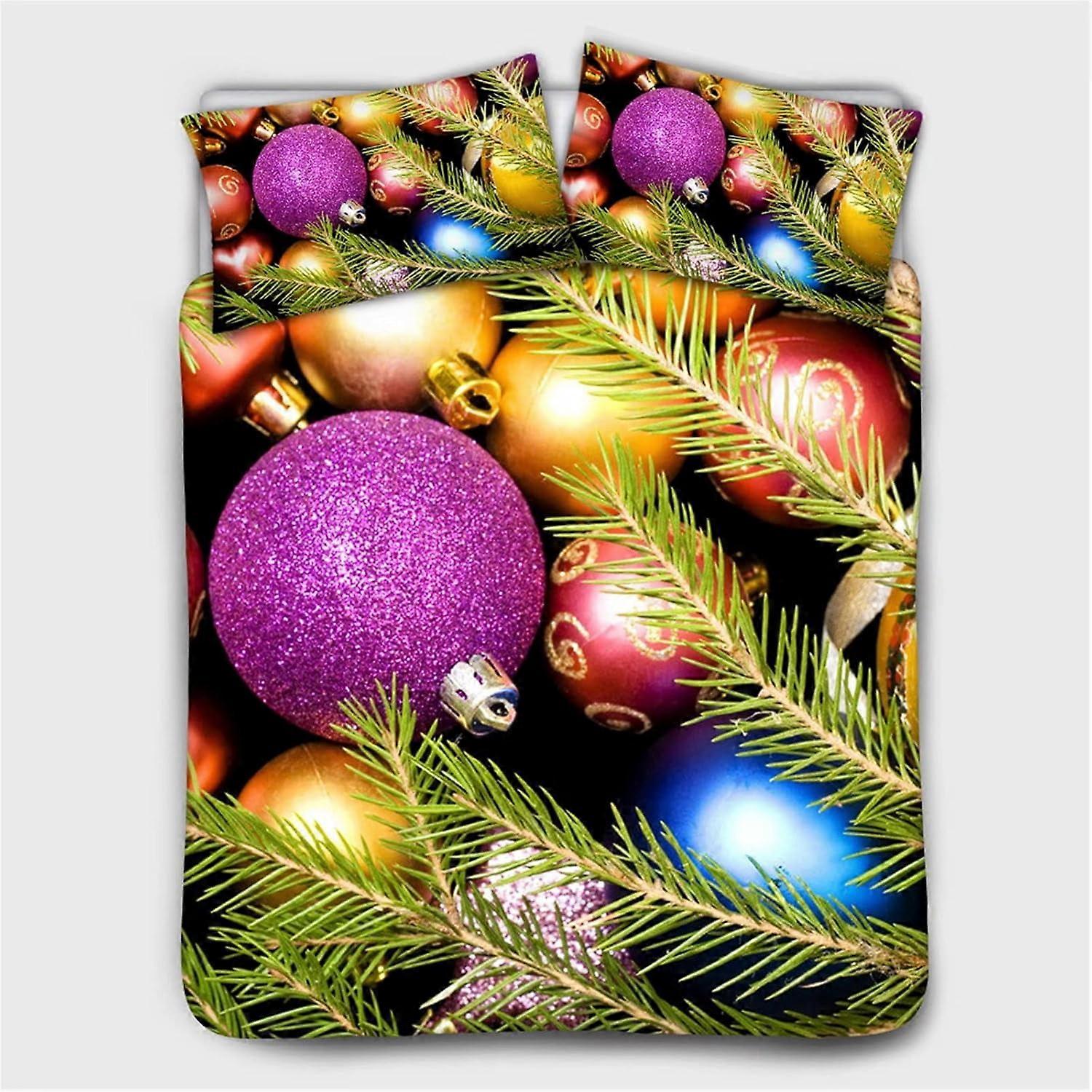 Duvet Purple Christmas Ball Quilt Cover 3pc Bedding Set Comforter for Girls Kids Breathable Bedspread on The Bed Winter Washable