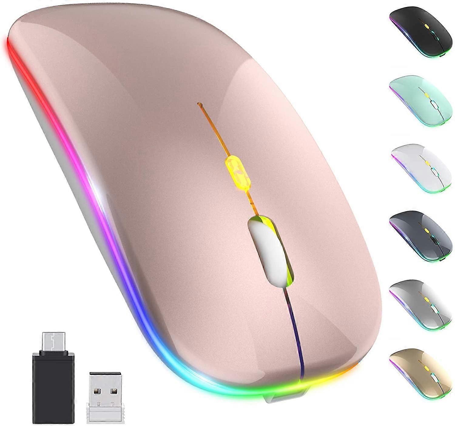 【Upgrade】 LED Wireless Mouse, Slim Silent Mouse 2.4G Portable Mobile Optical Office Mouse with USB & Type-c Receiver, 3