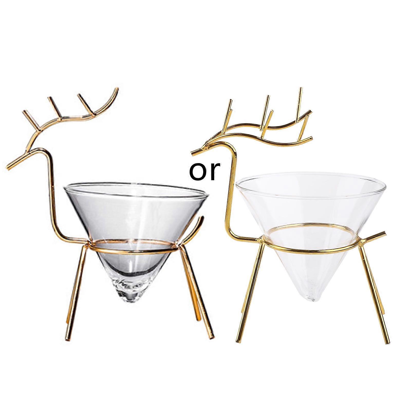 JUNTEX Iron Deer Holder Creative Stemless Martini Cocktail Glass Crafts for Home Decor