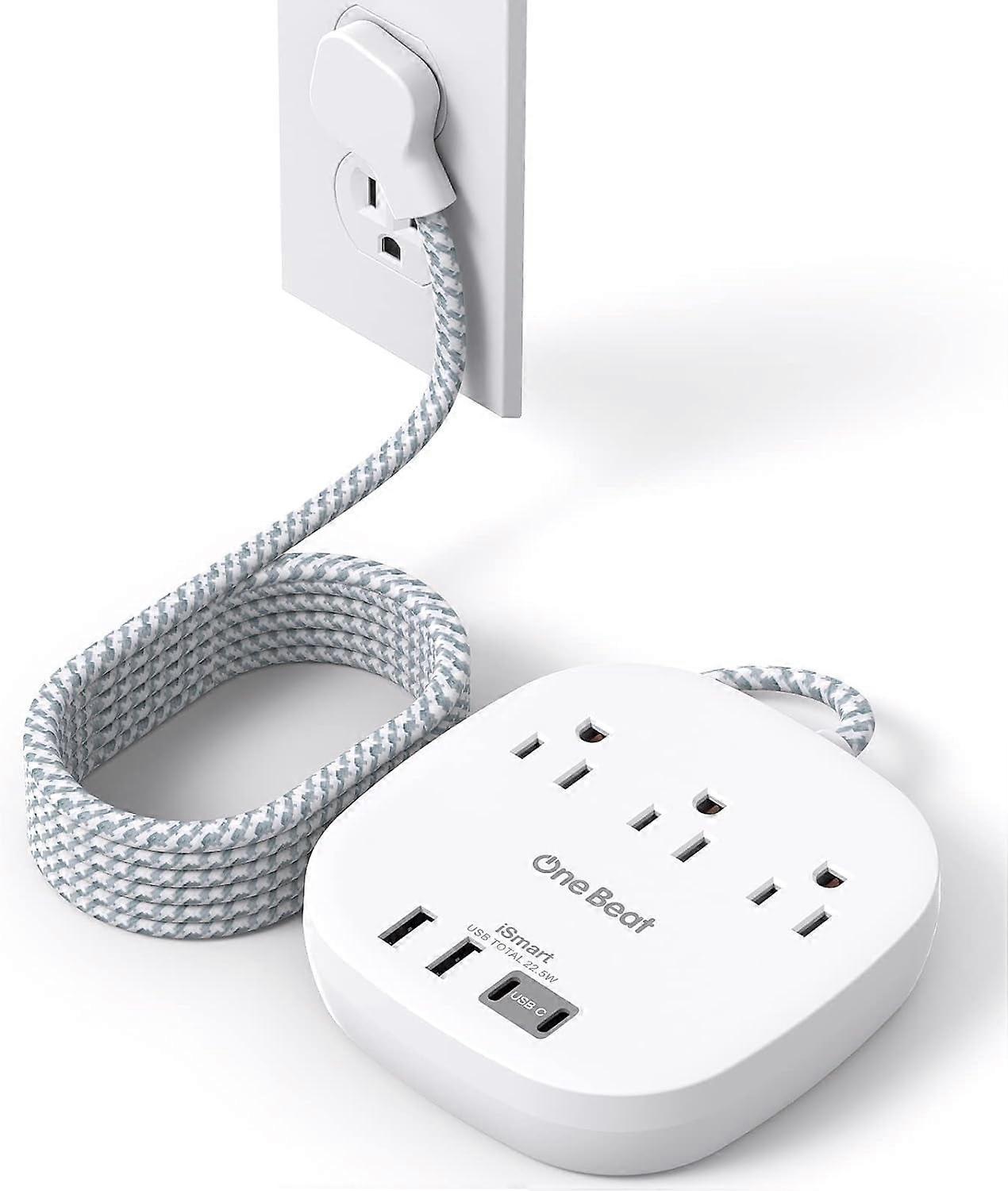 10Ft Flat Plug Power Strip, Ultra Thin Extension Cord - 3 Outlets 4 USB Ports (2 USB C) Desktop Charging Station,