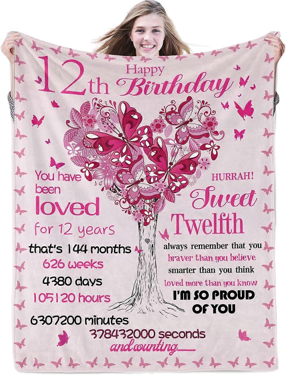 Sweet 12 Blanket Gift for Girls, 50''x60'' Flannel Fleece Throw for Daughters, Nieces, Granddaughters – Happy 12th Birthday Decor