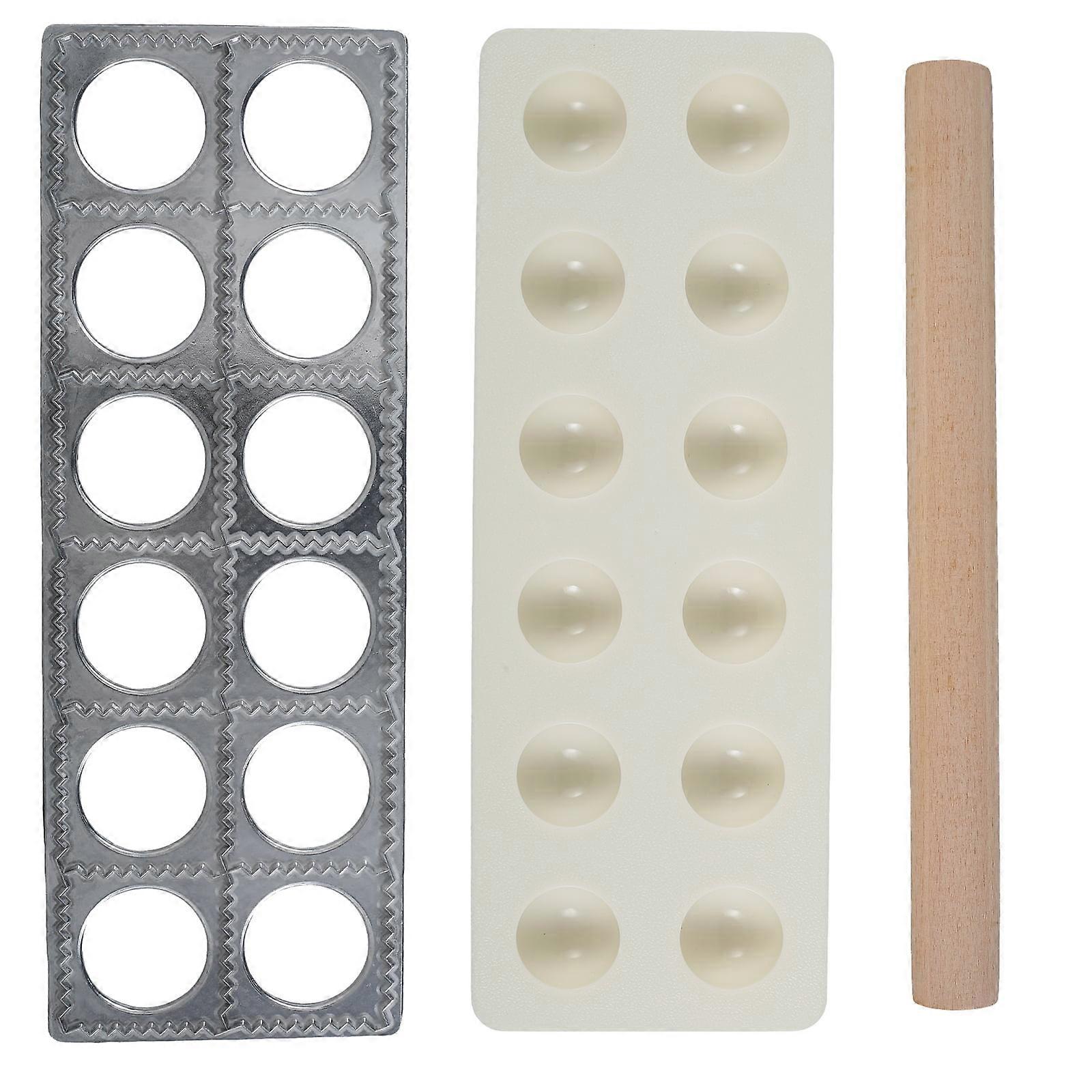 Lzvxtym Aluminum Alloy Ravioli Maker 12-Hole Tray with Rolling Pin, Compatible with Homemade Dumpling Mold Set