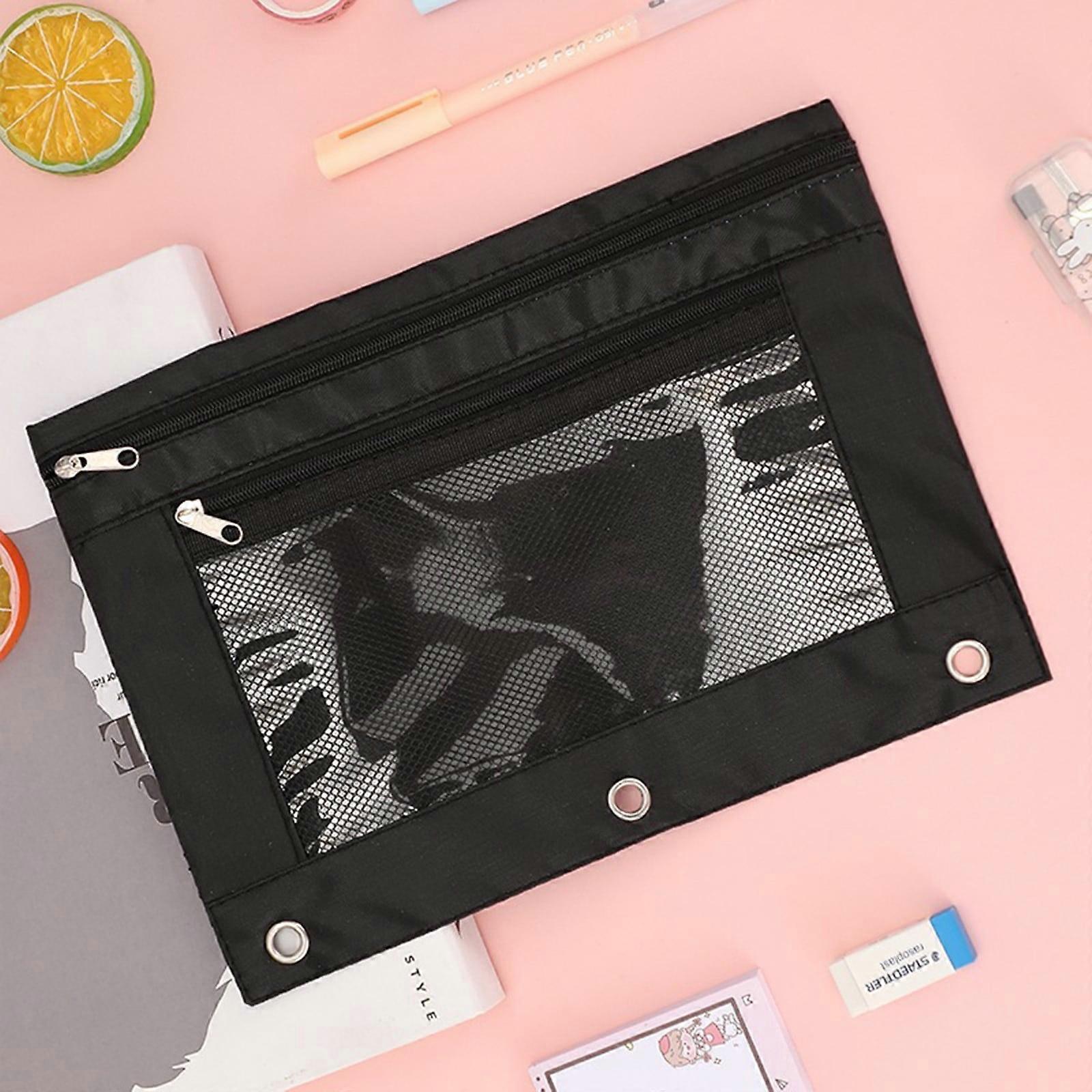 Pouch 2 Pack, Fabric Zippered Pencil Case for 3 Ring Binder, Black School Office Organizer – Compatible with 3 Ring Binders