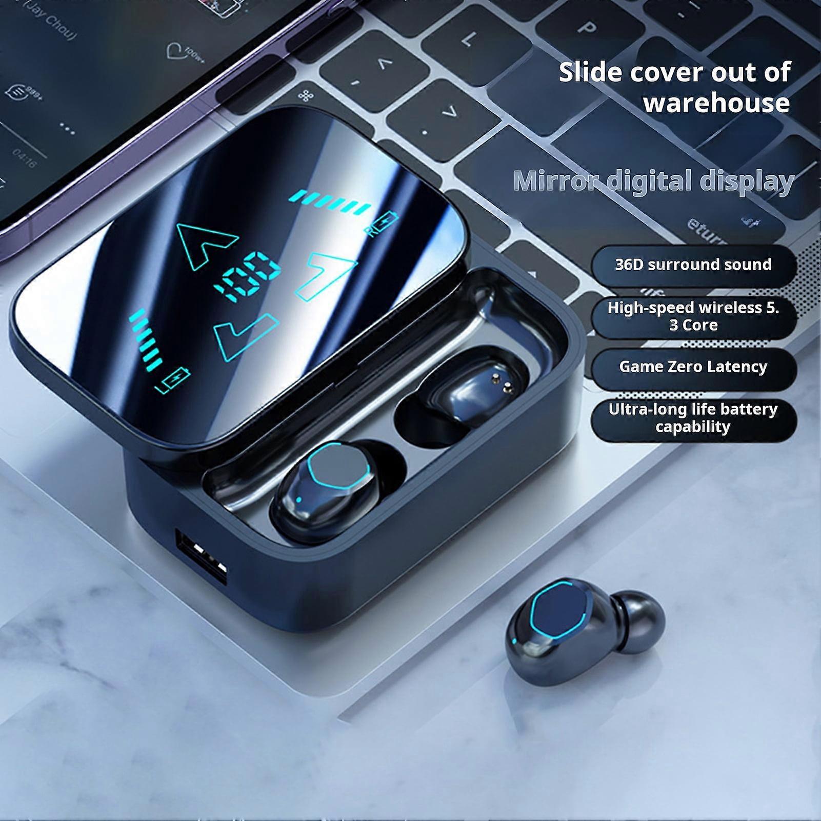 SUSUchens Wireless Earbuds Digital Display Charging Case Built-in Mic Stereo In-Ear Bluetooth-compatible 5.3 Headphones White