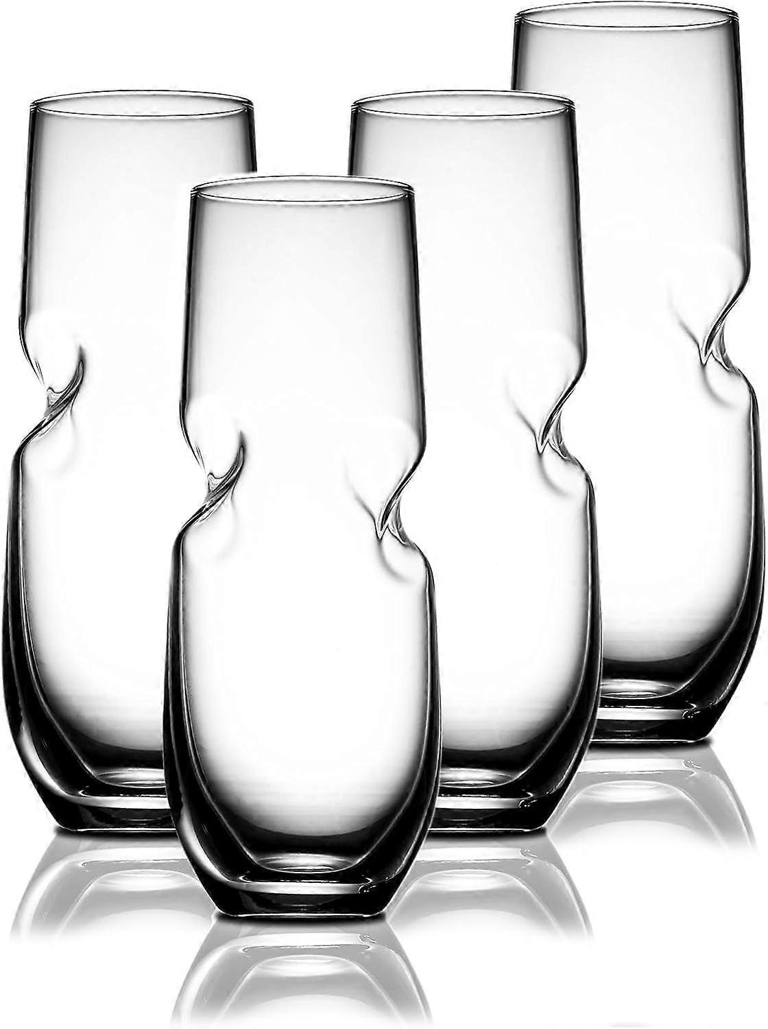 Set of 4 18oz Stemless Wine Glasses with Spiral Aeration Design, Ideal for Red & White Wine (US Style)