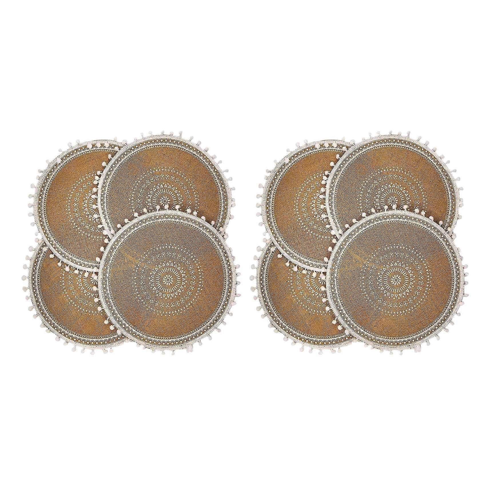 Round Placemats Set of 8,Boho Woven Jute Table Mats with Pompom Tassel for Dining Room Kitchen Table Decor(White Ball)