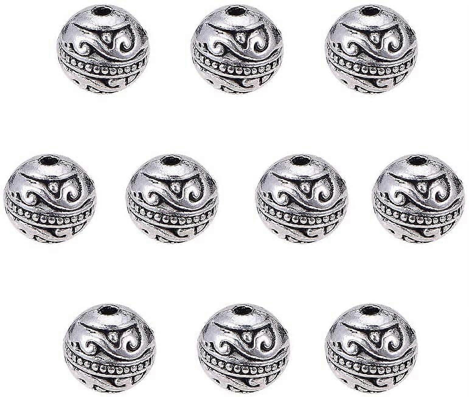 8mm Round Spacer Beads, 60pcs Antique Silver Tibetan Alloy Loose Beads Compatible with Jewelry Making, DIY Bracelets, Necklaces, 1.5mm Hole