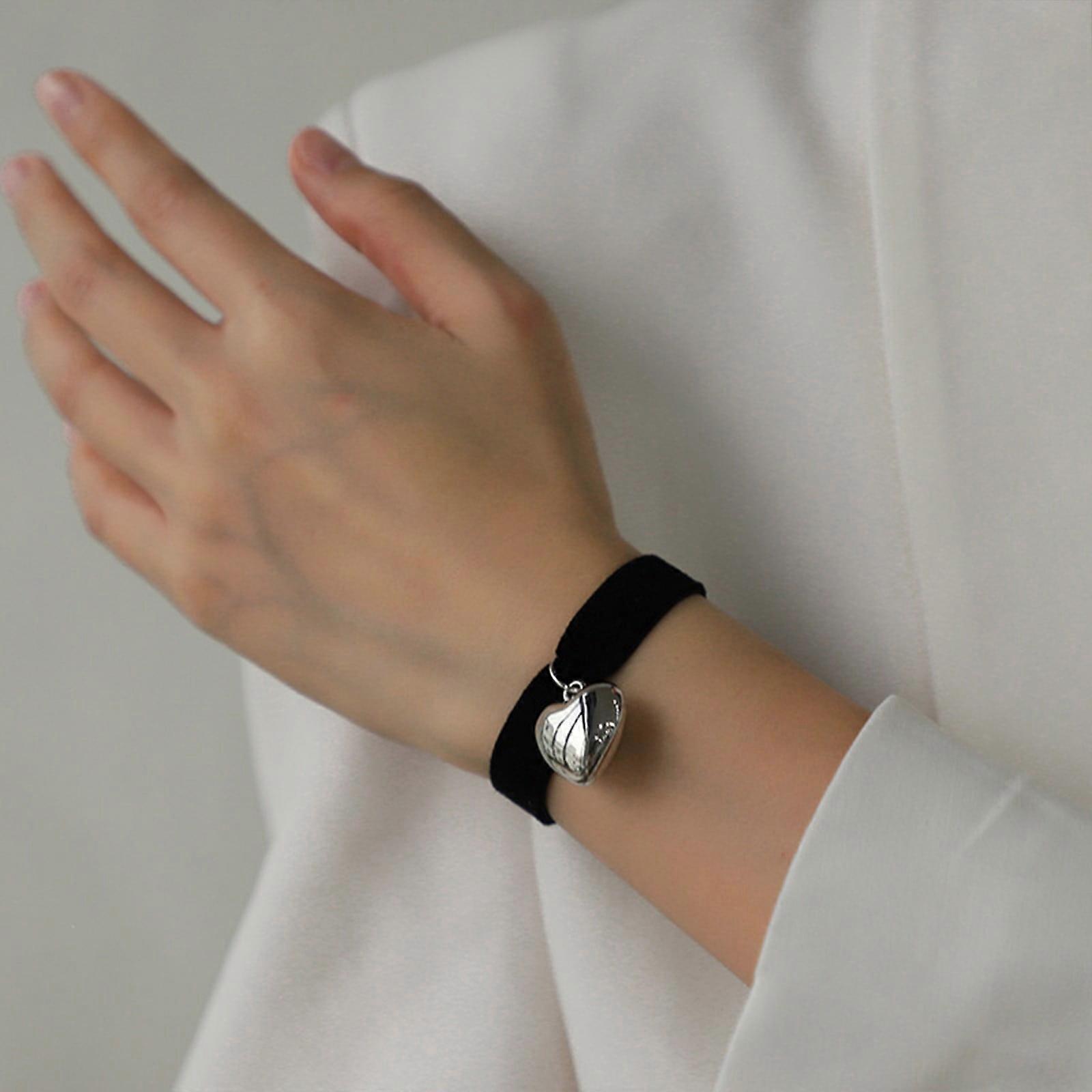 Jacenvly 2024 Valentine's Day Stretch Velvet Wide Band Heart Peach Bracelet - Romantic Jewelry Gift for Her