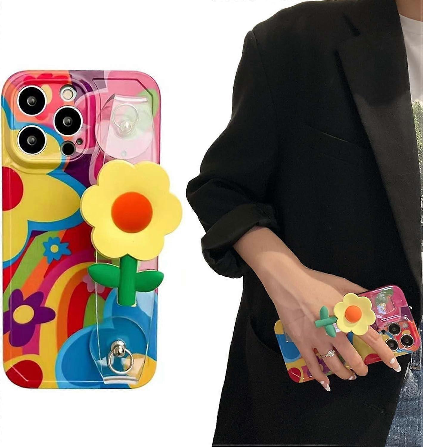 Cute Flower Silicone Phone Case with Lanyard, Crossbody Strap & Kickstand, compatible with iPhone 15 Pro