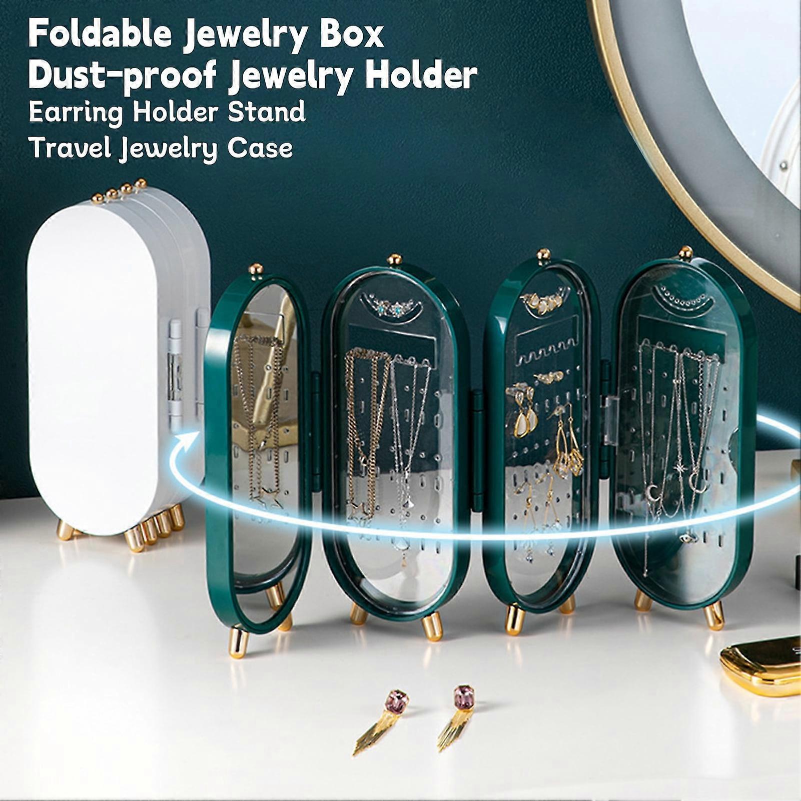 SUSUchens Earring Holder Stand Jewelry Storage Box with Mirror Large Capacity Dustproof Foldable Jewelry Display Stand Box Green
