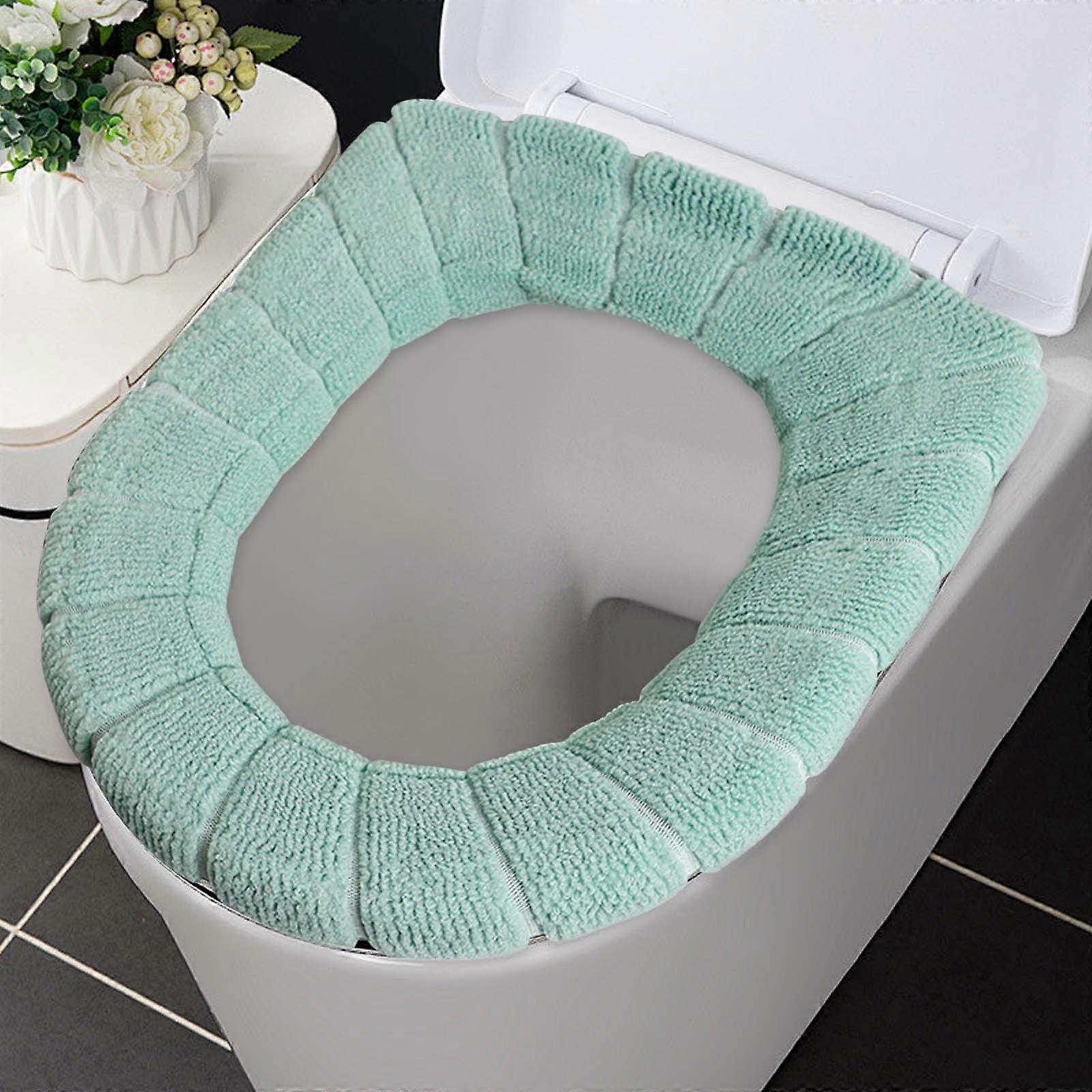 Soft, thick toilet seat cover pads - stretchable, washable, warm & comfortable. Easy to install. Compatible with standard toilets.