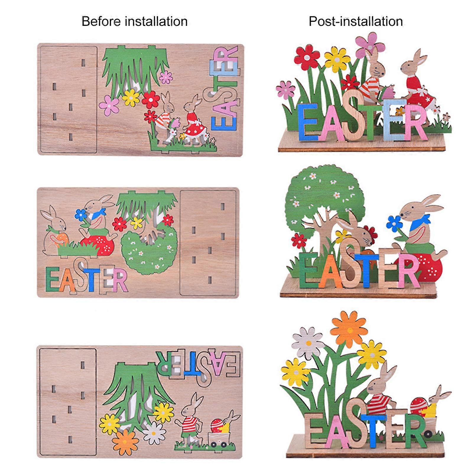 SUSUchens Easter Ornament, Wooden Rabbit with Floral Letters, Rich Colors, Smooth Edges, DIY Artwork for Desktop, Gift, Photo Prop, Compatible with B