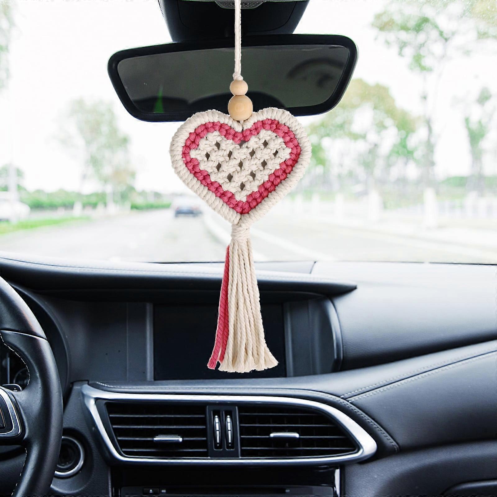 Begine Love Heart Valentine's Day Wall Hanging Rose Red, Heart Shaped Macrame Tassel Pendant, compatible with car or home decor