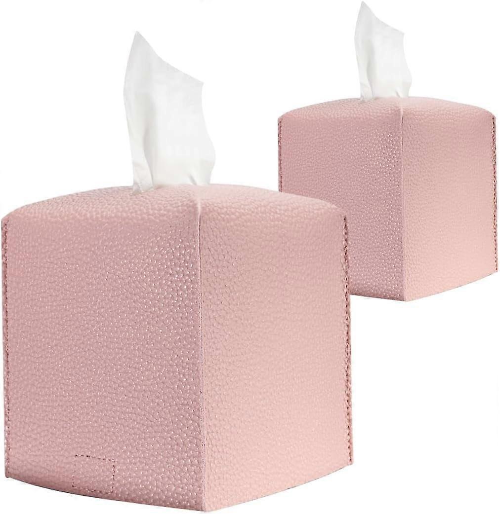 2 Pack 5x5x5'' PU Leather Tissue Box Covers, Litchi Grain, Dusty Rose - Compatible with Standard Square Boxes