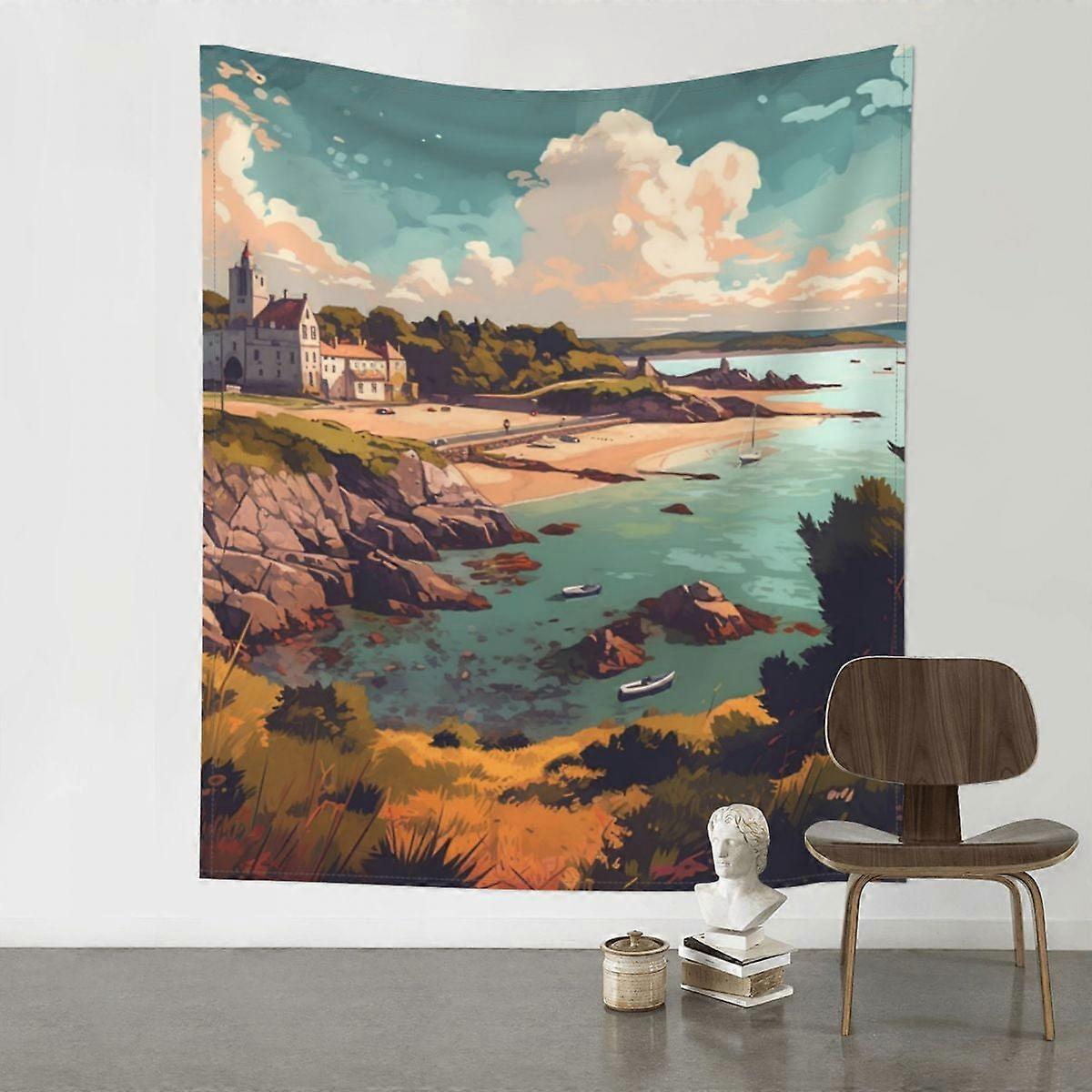 Decorative Wall Hanging Seaside Wall Decor Tapestry 60x51in (Vertical Style) Black