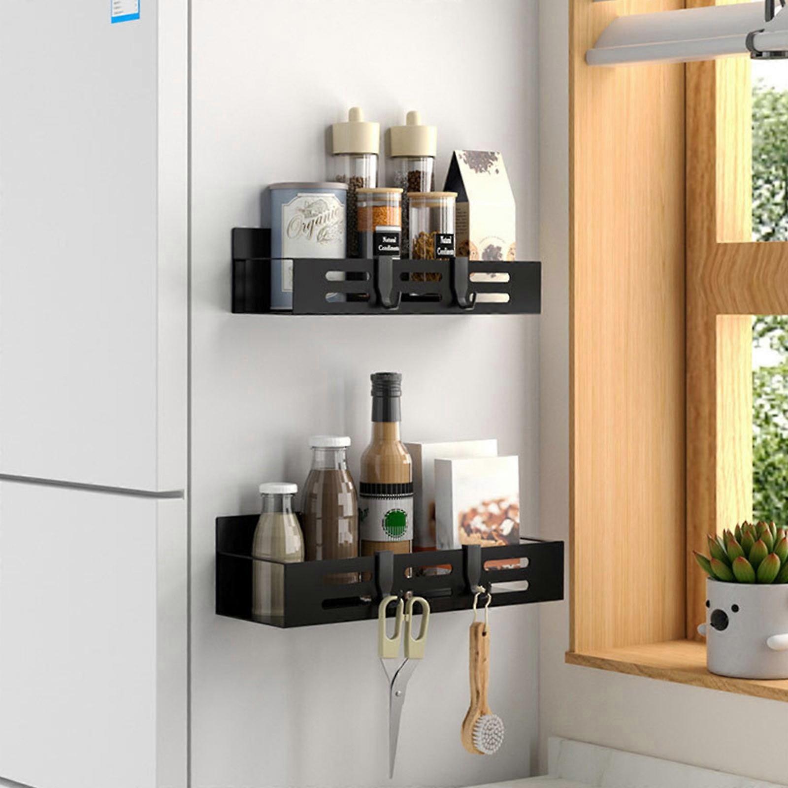Jacenvly Refrigerator Side Storage Rack, Wall-Mounted Magnetic Seasoning Rack, 2 Sizes, Compatible with Metal Surfaces, Home & Living Room Decor