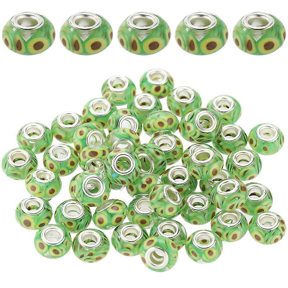 1Bag 50Pcs Transparent Resin Rondelle Beads 14x8.5mm, Avocado Clay & Platinum Alloy Cores, 5mm Hole, Yellow Green