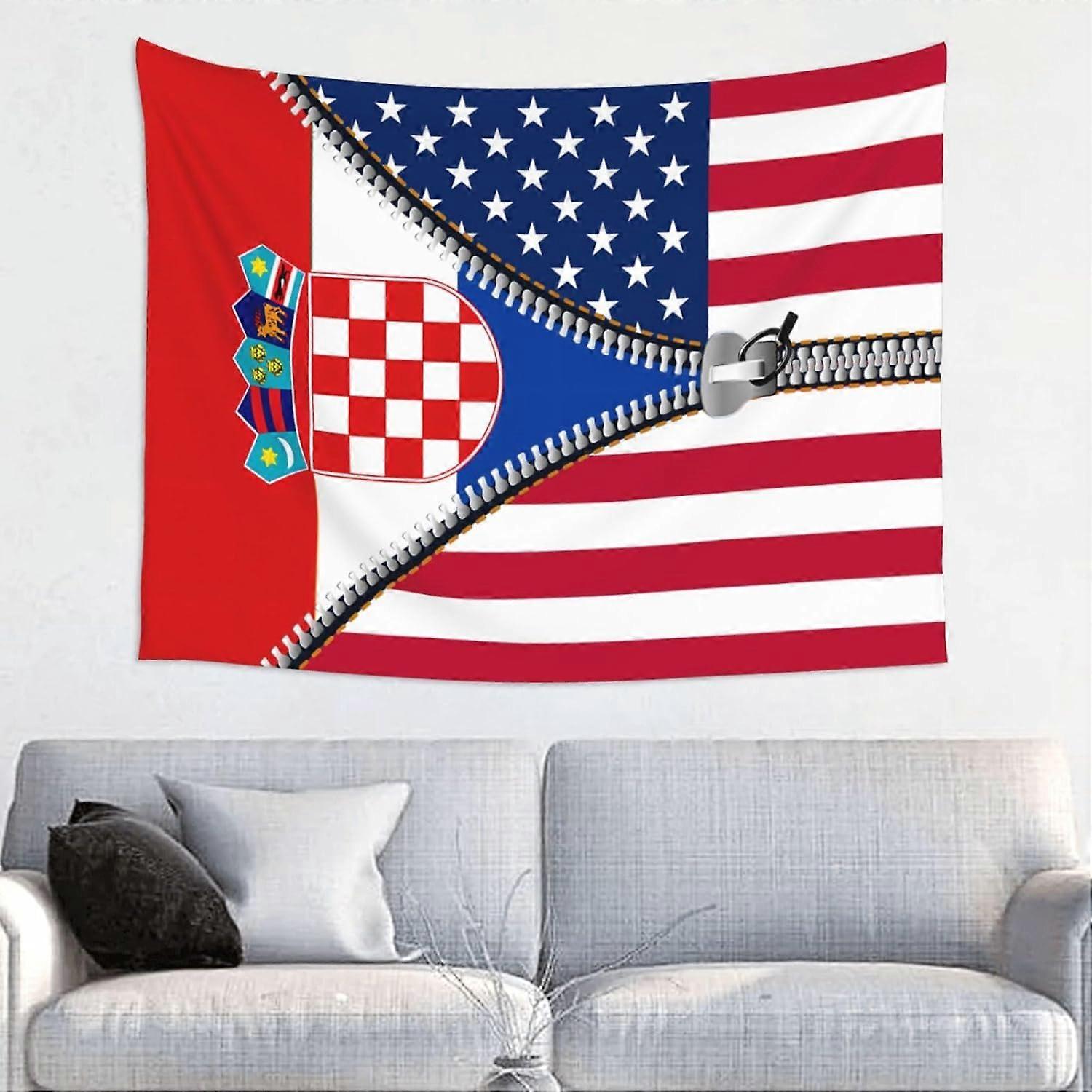Tapestry 29x37 inches Wall Art Hanging Croatian America Flag Tapestries Banner Sign Poster Home Decor for Bedroom Living Room Dorm for All Seasons
