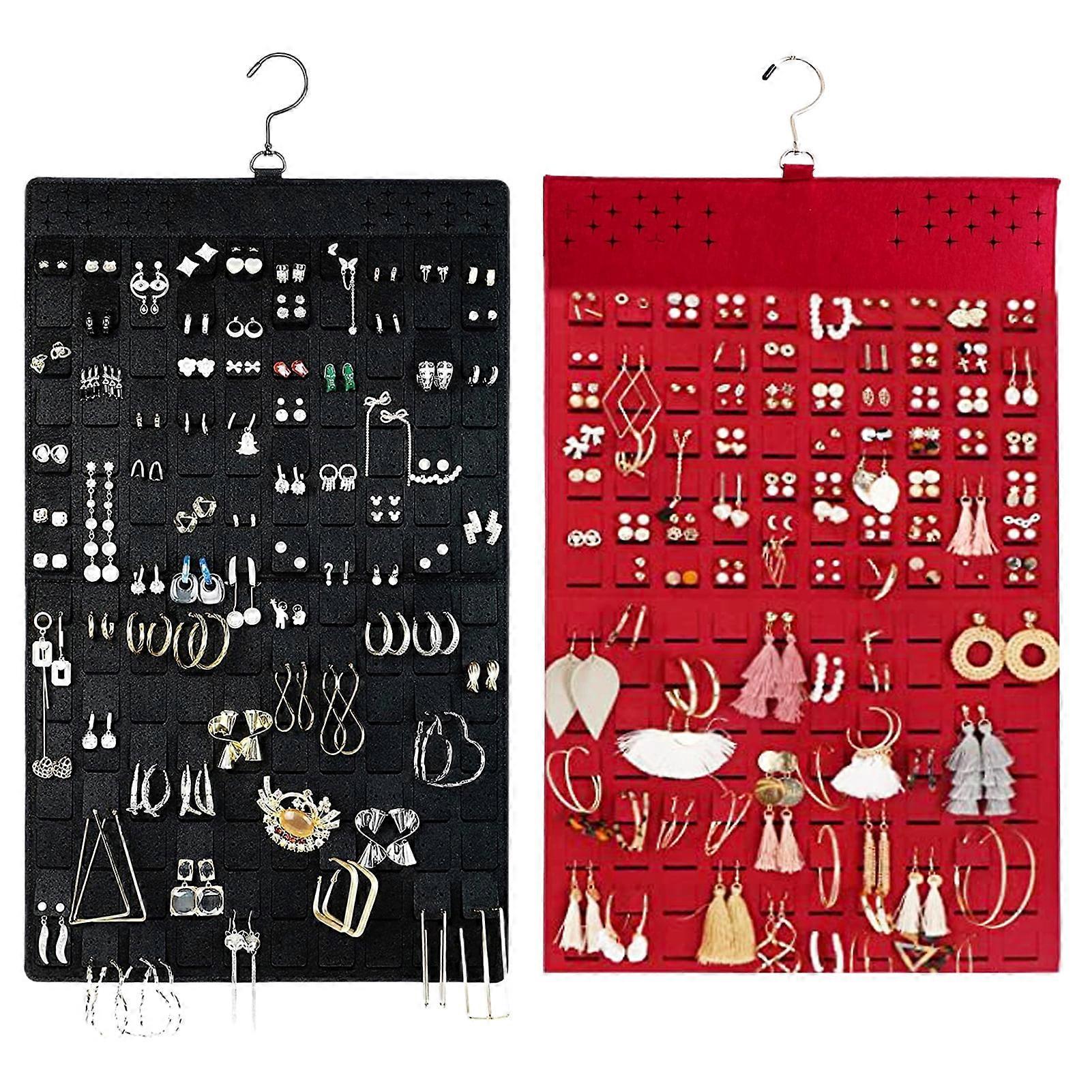 SUSUchens Jewelry Storage Bag, Large Capacity Hanging Organizer with Hook, Compatible with Earrings, Necklaces, Red