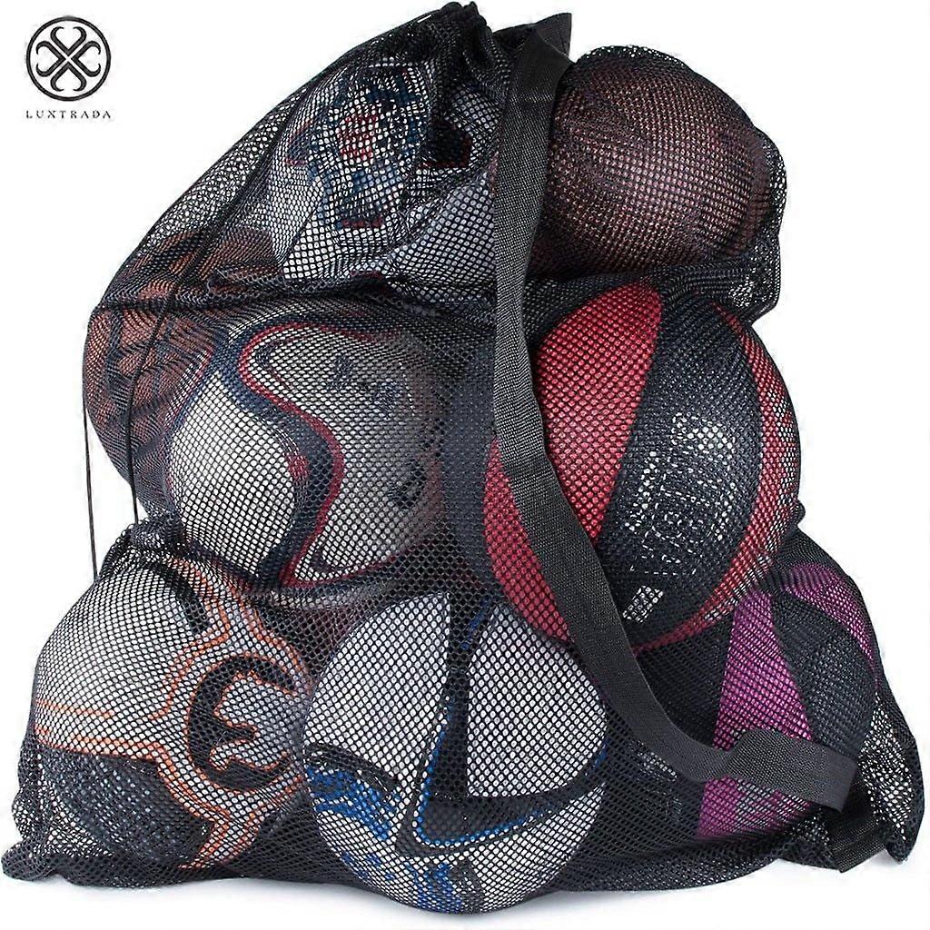 Luxtrada Sports Ball Bag Drawstring Mesh - Extra Large Professional Equipment with Shoulder Strap Black (28" x 40" Inches)