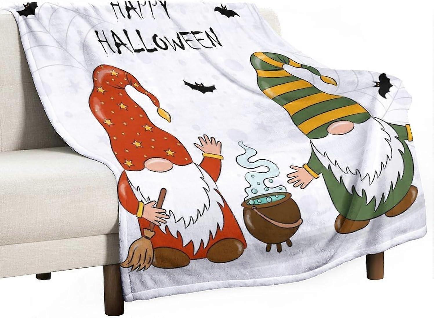 Cute Gnomes Broom Flannel Fleece Throw Blanket Happy Halloween Day 50x60 Inches Soft Blanket for Couch,Cozy,Warm,Lightweight