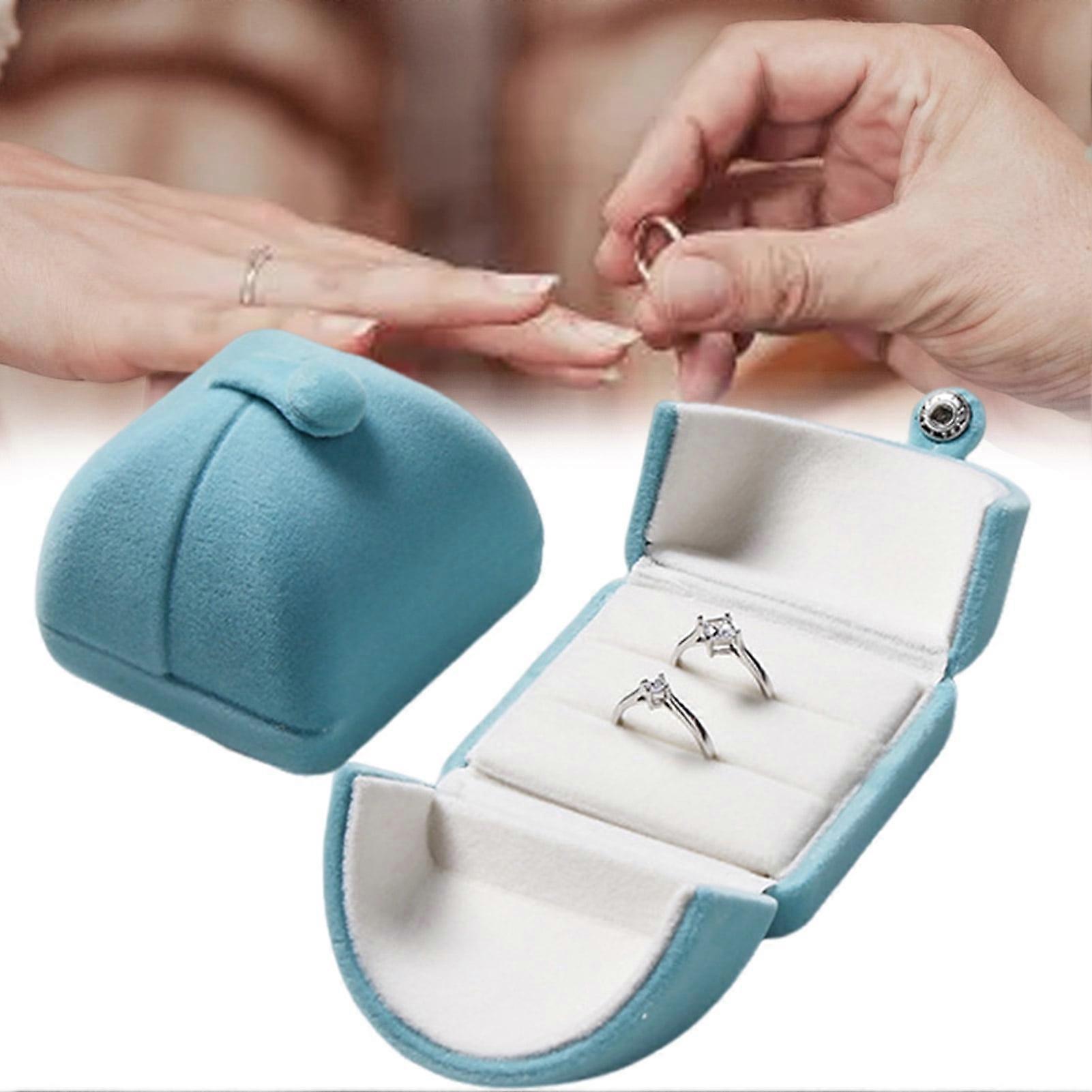 SUSUchens Ring Box Vintage Button Lock Double Opening Elegant Jewelry Box for Wedding Engagement Party Occasions Navy Blue