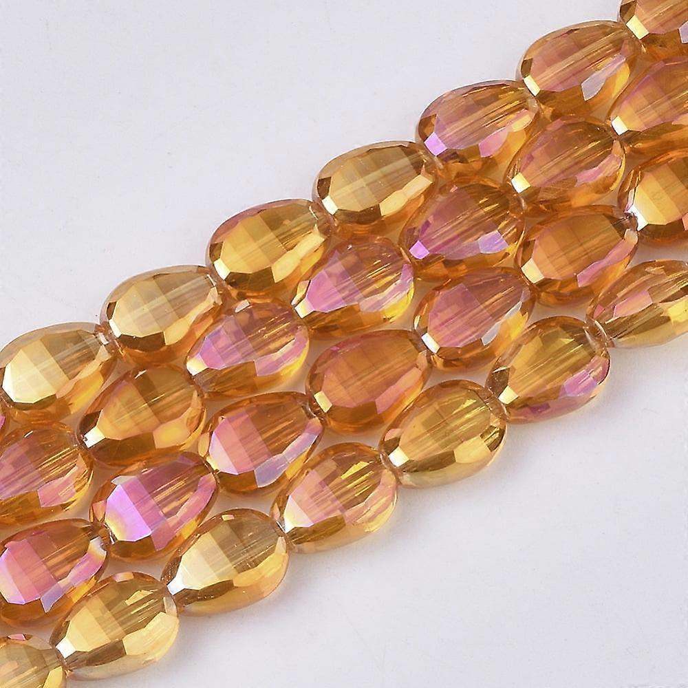 Electroplate Transparent Glass Beads Strands Faceted Teardrop Orange 8.5x6x3.5mm Hole: 1mm about 80pcs/strand 26.38 inch(67cm)