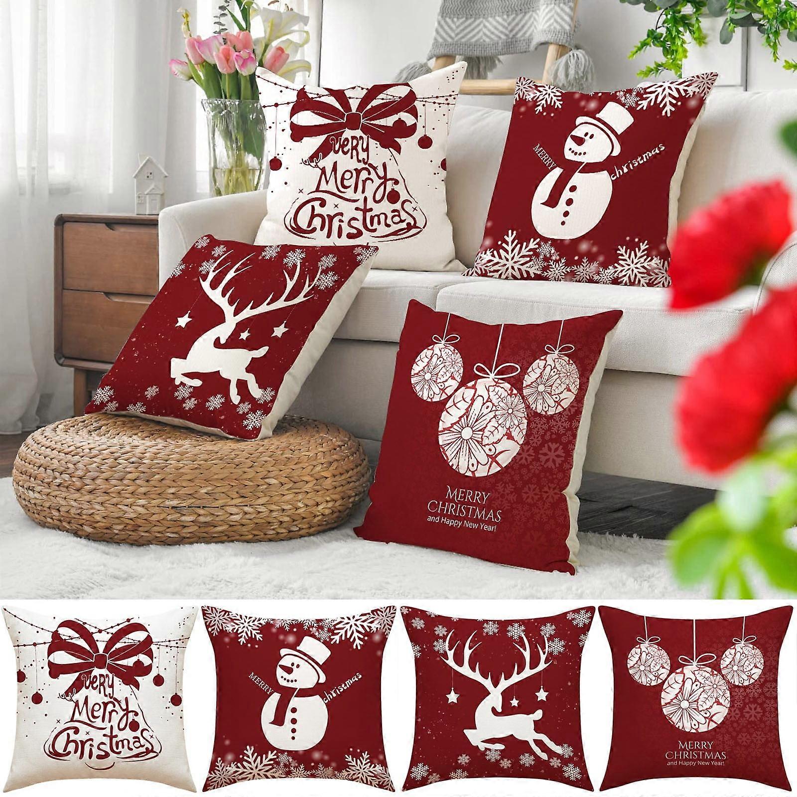 Up to 50% off 4PC Lksixu Christmas Red Pillow Case 18x18 Inch Linen Sofa Cushion Cover, compatible with Xmas Home Decor & Gifts