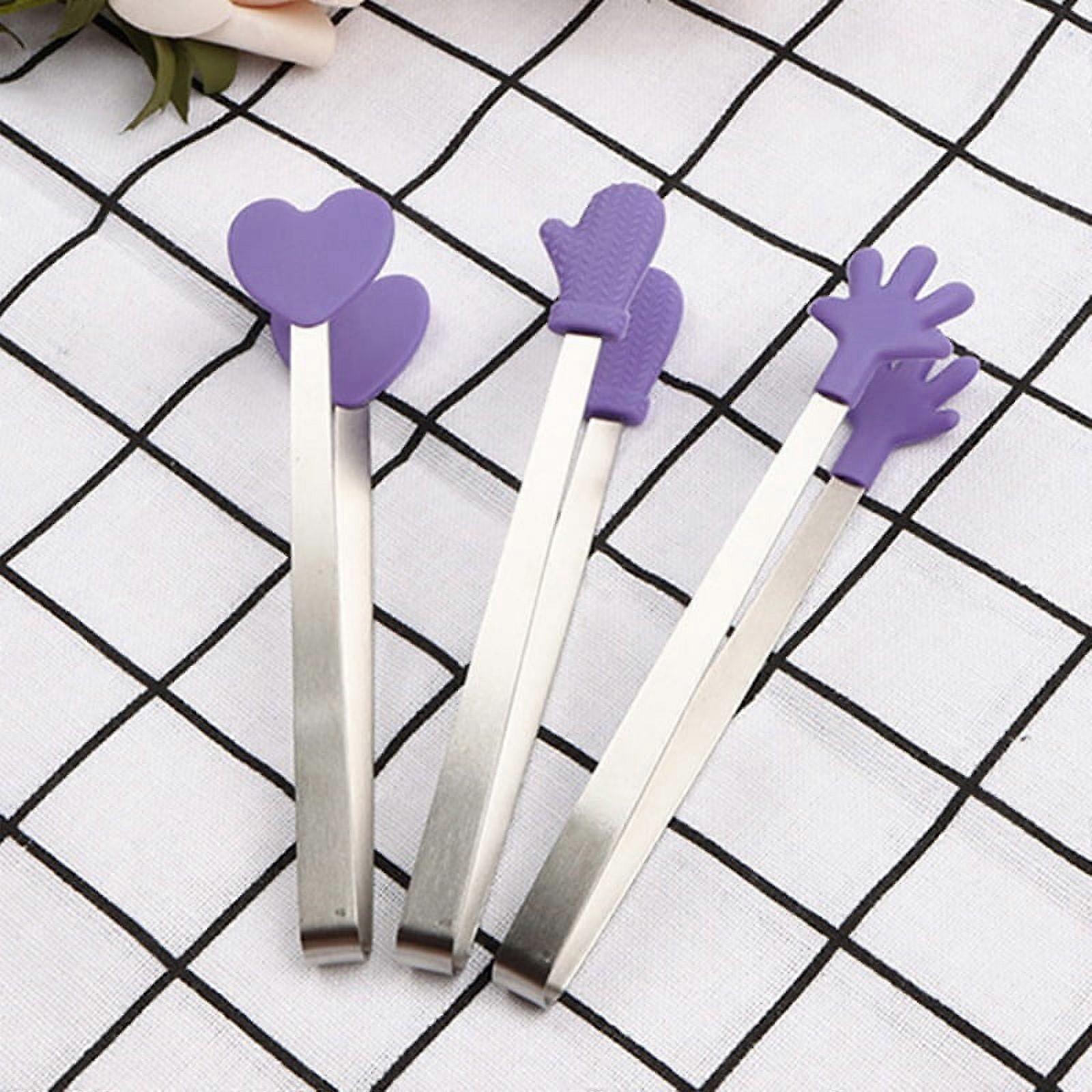 Mini Silicone Tongs, Cute Glove Heart Palm Shape Stainless Steel Ice Tongs, Food Grade Tongs(3 Pack)