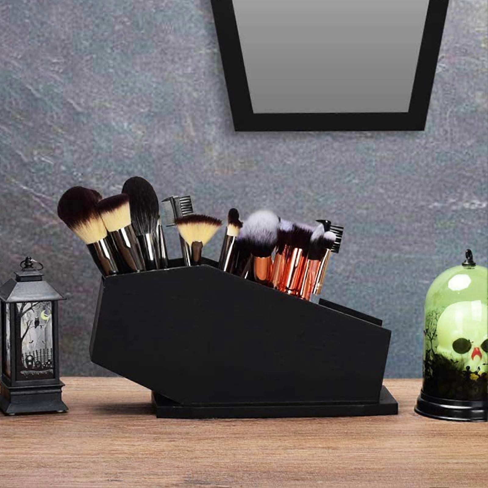 SUSUchens Makeup Brush Box Gothic Casket Shape Makeup Brush Holder Elegant Mysterious Pencil Organizer for Home Black