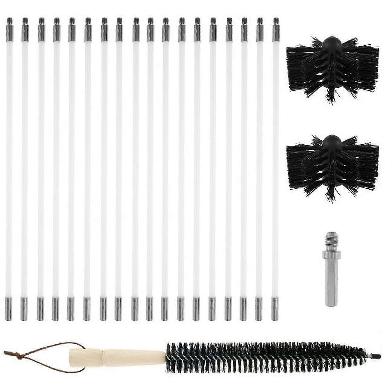 Nyidpsz 22PCS Chimney Sweep Kit, 24.2FT, compatible with Fireplace Flue, Dryer Vent, Sewage Pipe, Duct Vent Cleaning Set with 18 Nylon Rods, 2 Brush