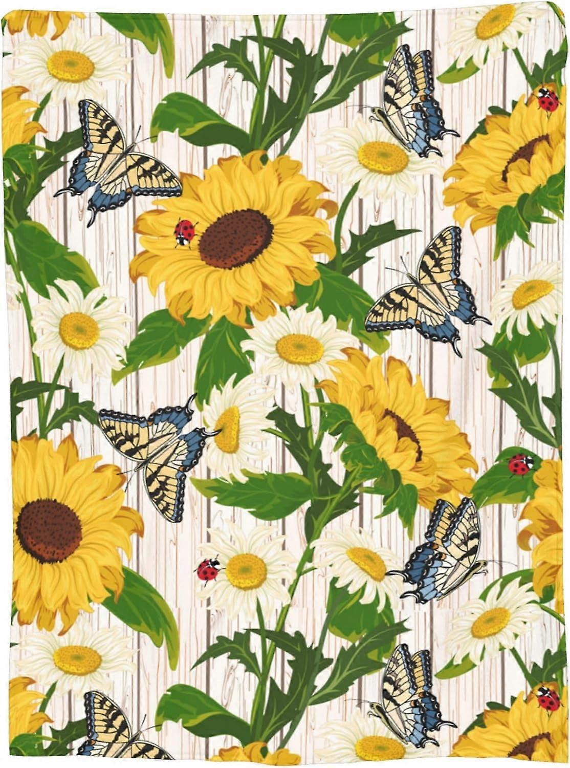 for Sunflower Flannel Blanket Decorative, Floral Sunflower Flower Soft Throw Blankets for Bed Sofa, Couch, Chair Decor All Season Gifts 60"x50"
