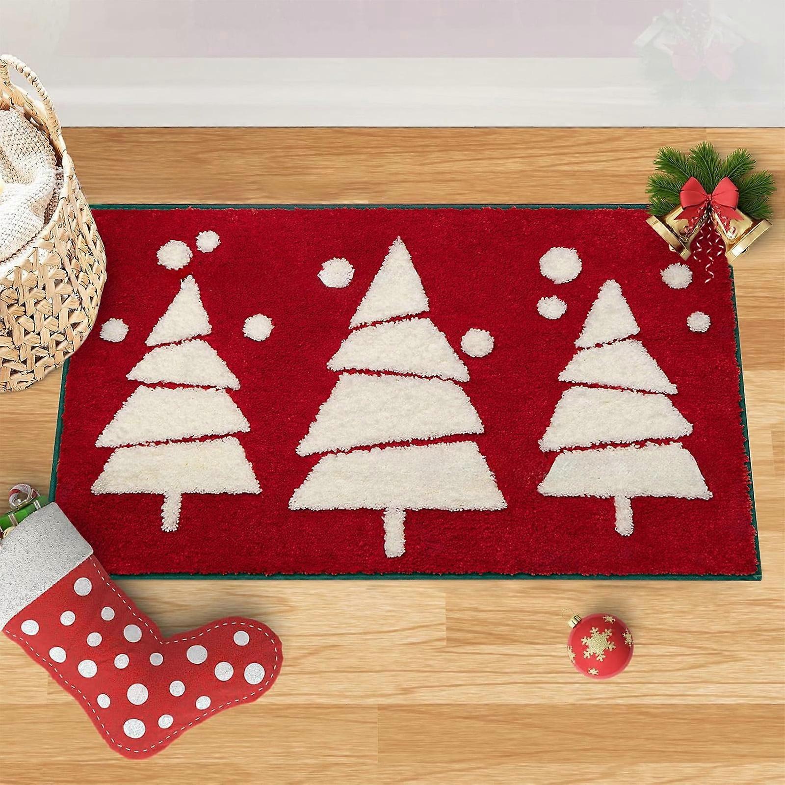 karymi Christmas Imitation Red Entrance Carpet, Compatible with Christmas Tree Decor, Non-slip Mat for Bathroom, Door, Living Room, 15.7x23.6"