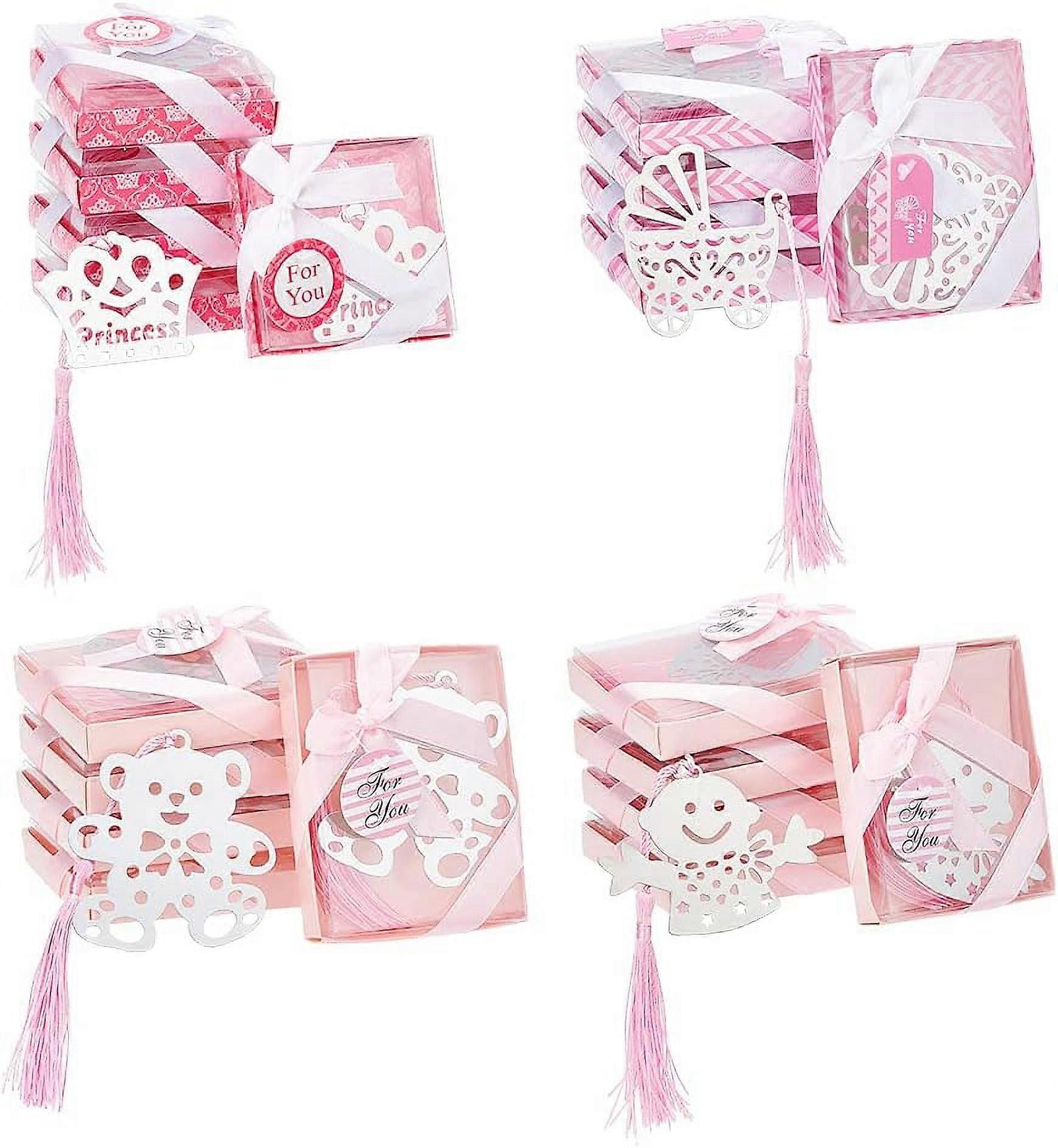 20Pcs 4 Styles Metal Bookmark Set with Tassel, Compatible with Book Lovers, Gift Box for Birthday Wedding Guest Favor, 170-204mm, Pearl Pink