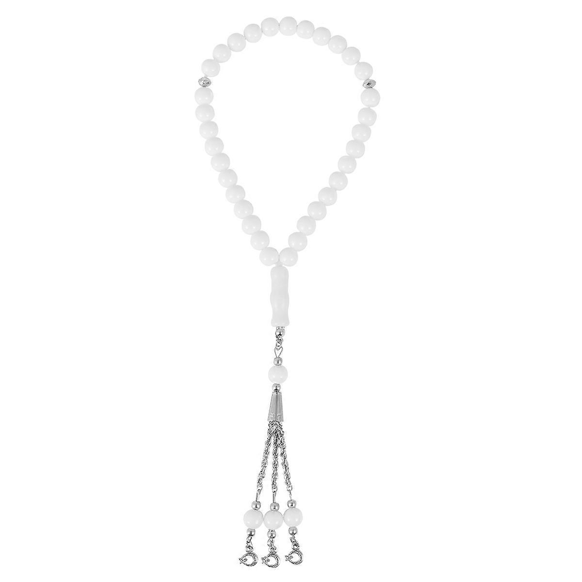 Mizh Muslim Prayer Beads Pilgrimage Glass Beads Rosary Prayer Hand Chain (White)