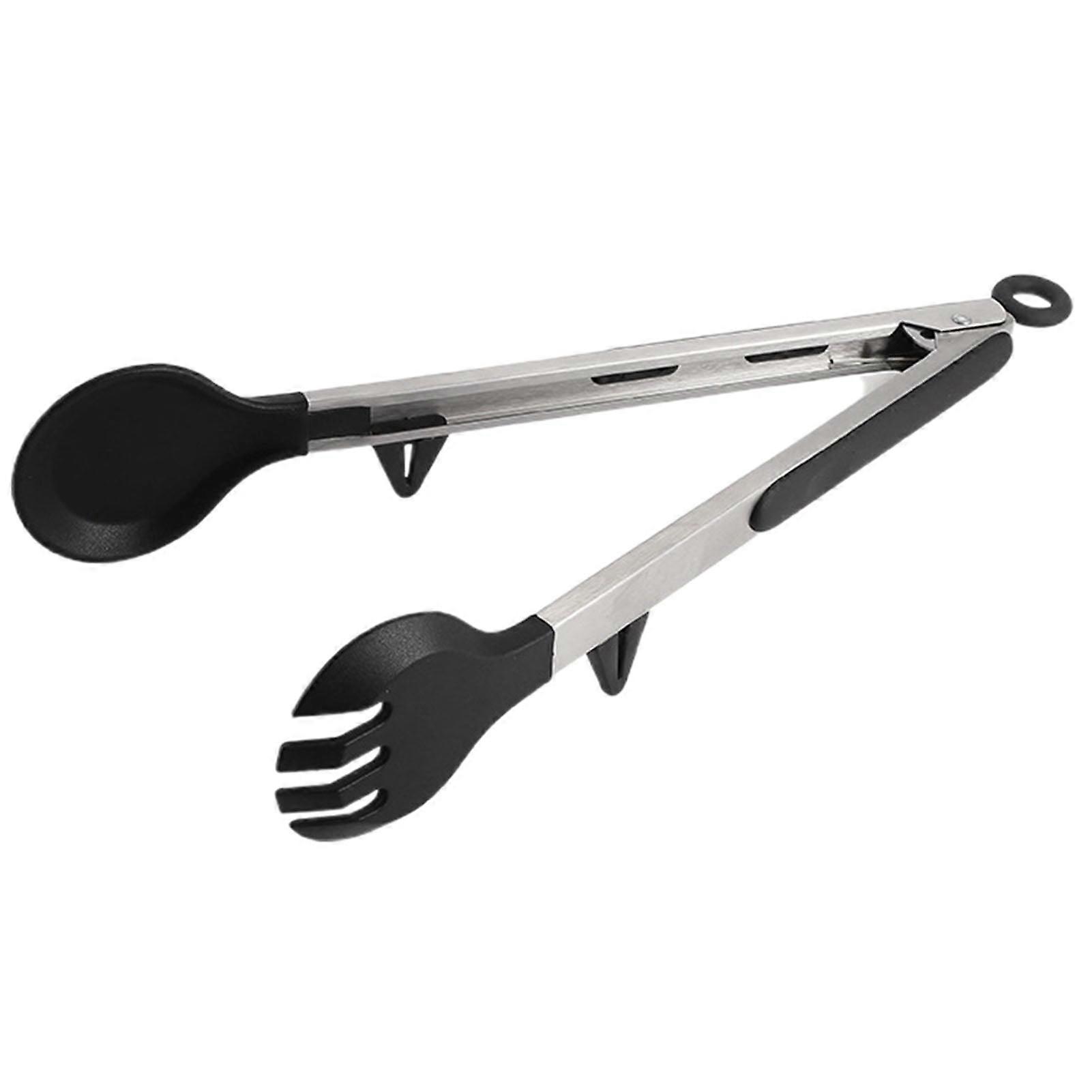 Stainless Steel Silicone Food Tongs Non-scratch with Stand - Comfortable Heat-resistant Handle - Multipurpose Food Clip - Kitchen Serving Utensil